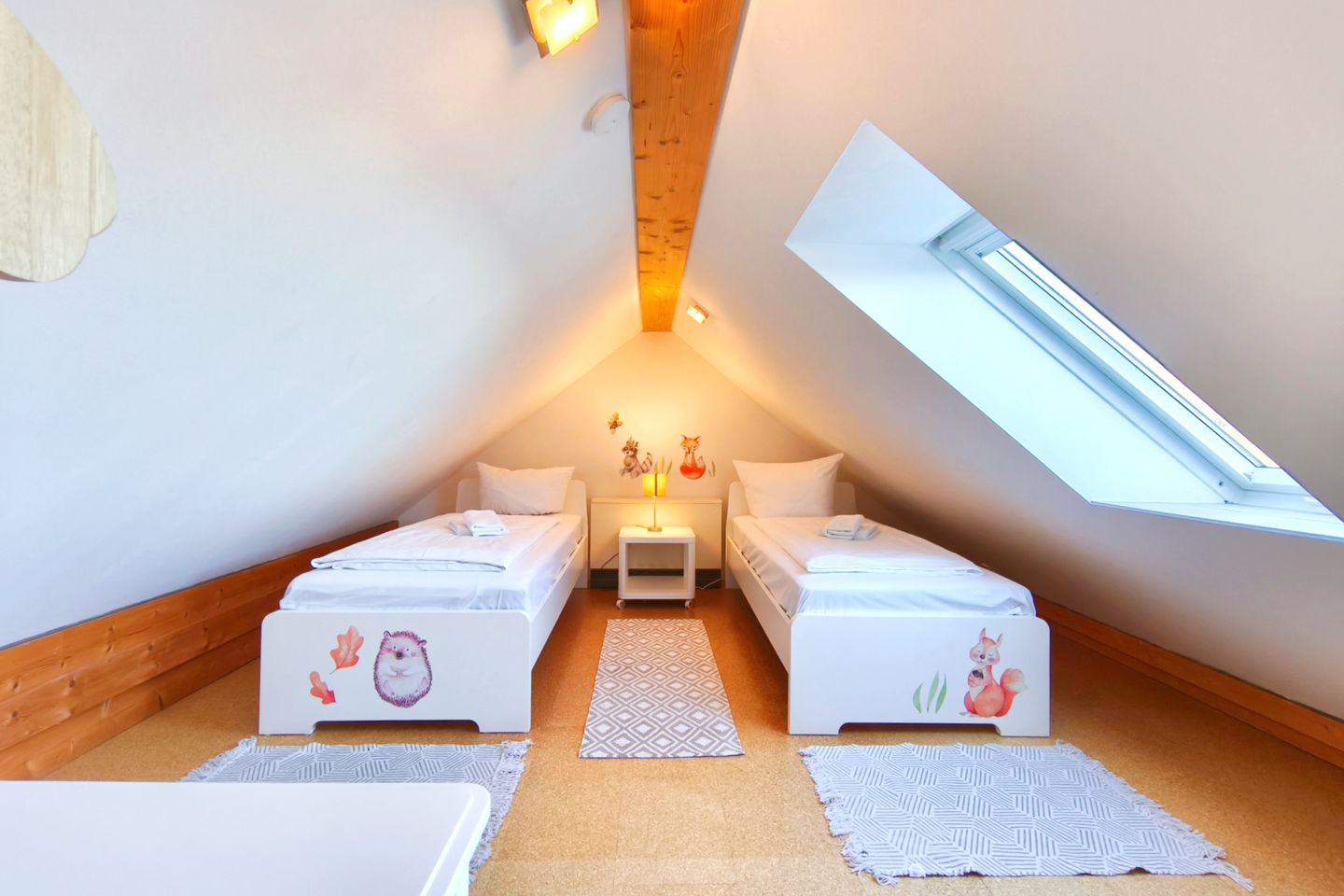 Das Obergeschoss ist das perfekte Rückzugsgebiet für die kleinen Gäste. Es besteht aus zwei Räumen, die den Kindern viel Platz zum Spielen und Entspannen bieten: