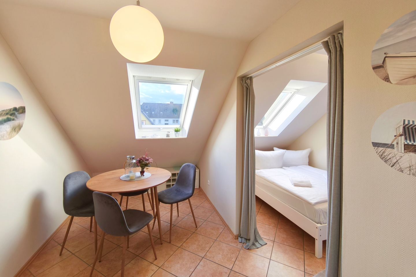 Die Ferienwohnung „Lütten Utkiek“ bietet Ihnen ein einzigartiges Urlaubserlebnis im Dachgeschoss einer Appartementanlage am malerischen Ortsrand des Seebads Zempin – dem kleinsten Seebad auf der Insel Usedom.