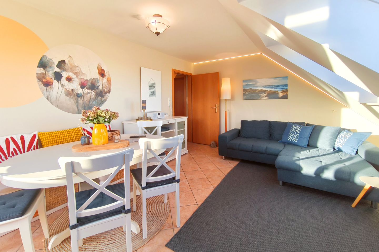 Diese liebevoll gestaltete Unterkunft erstreckt sich über zwei Etagen und befindet sich im 3. Obergeschoss. Der Zugang erfolgt über ein Treppenhaus.